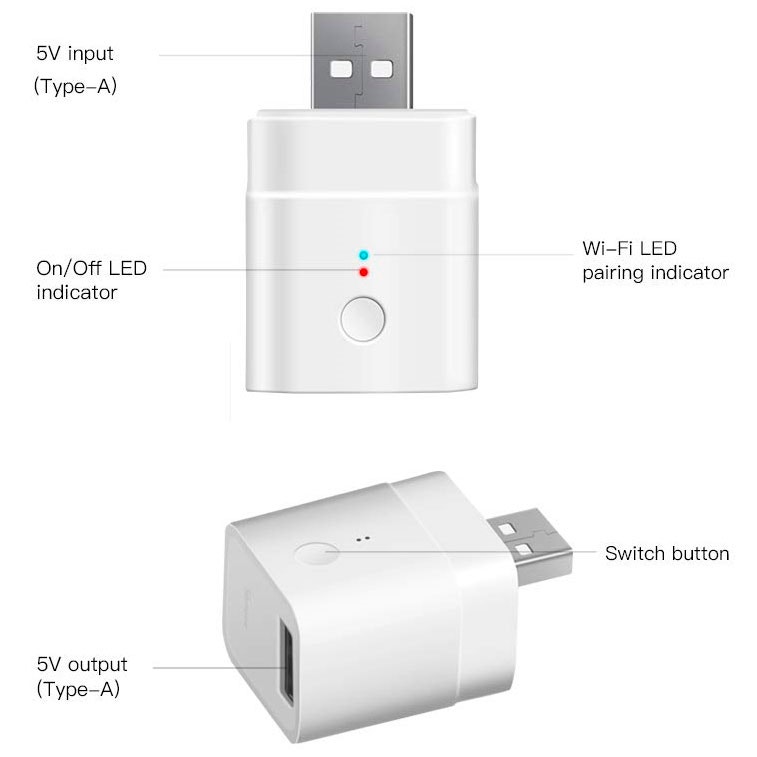 El adaptador inteligente micro USB de Sonoff hace que tus dispositivos USB ordinarios sean inteligentes. La aplicación eWeLink te permite controlar todos los dispositivos Sonoff en cualquier lugar con un solo toque a través de teléfonos inteligentes iOS y Android, sin limitación de distancia. Nota: el router debe ser de 2,4 GHz (WiFi de 5,0 GHz no es compatible).