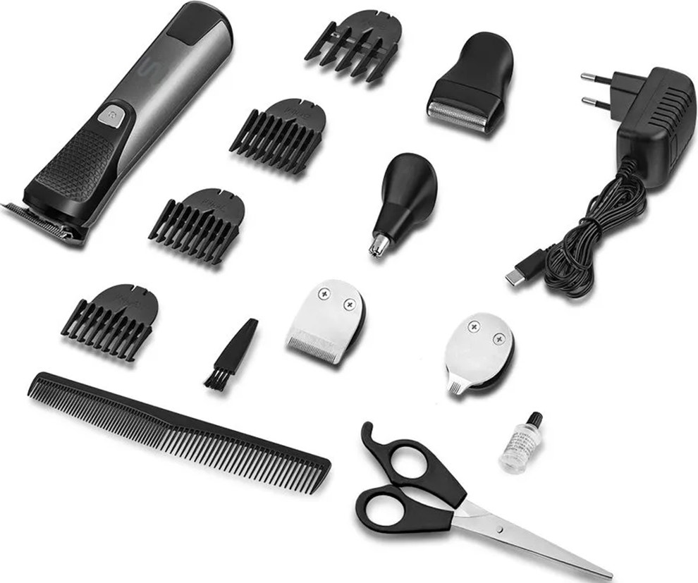Incluye trimmer para nariz y oreja, recortador de precisión, microafeitadora y cabezal principal para barba y cabello.