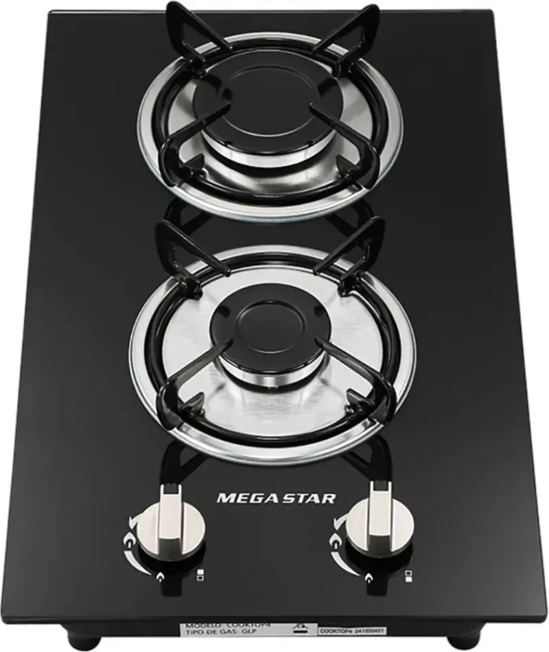 Anafe a Gas de 2 Bocas Mega Star. Potente, práctico y seguro. Ideal para tu cocina, oficina o viajes.