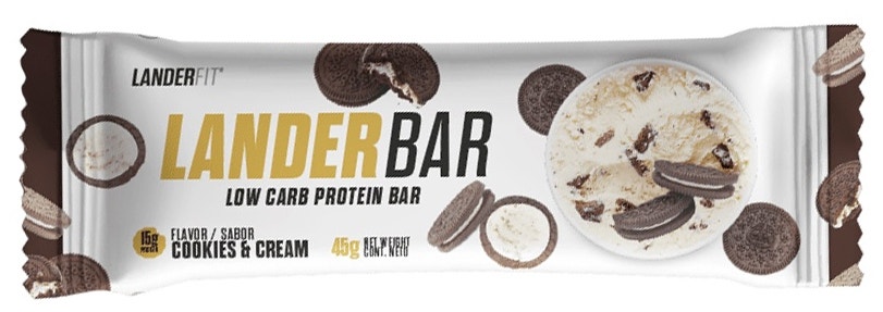 Fullbai / Alimentos y Bebidas / Suplementos y alimentos saludables / Proteínas y suplementos deportivos / Barra de Proteina Landerfit Landerbar Cookies & Cream – 45g