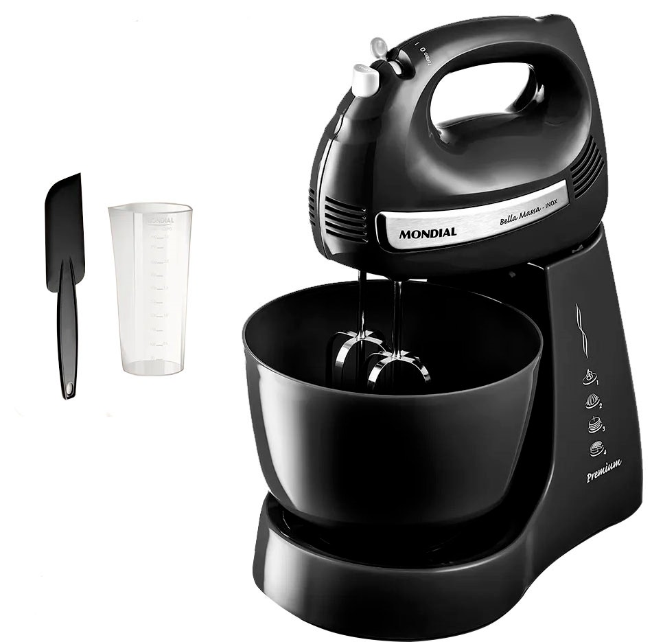Botón eyector y sistema de fijación exclusivo: Practicidad en la limpieza y el montaje, gracias al botón eyector que libera los batidores fácilmente y al sistema desarrollado por Mondial.