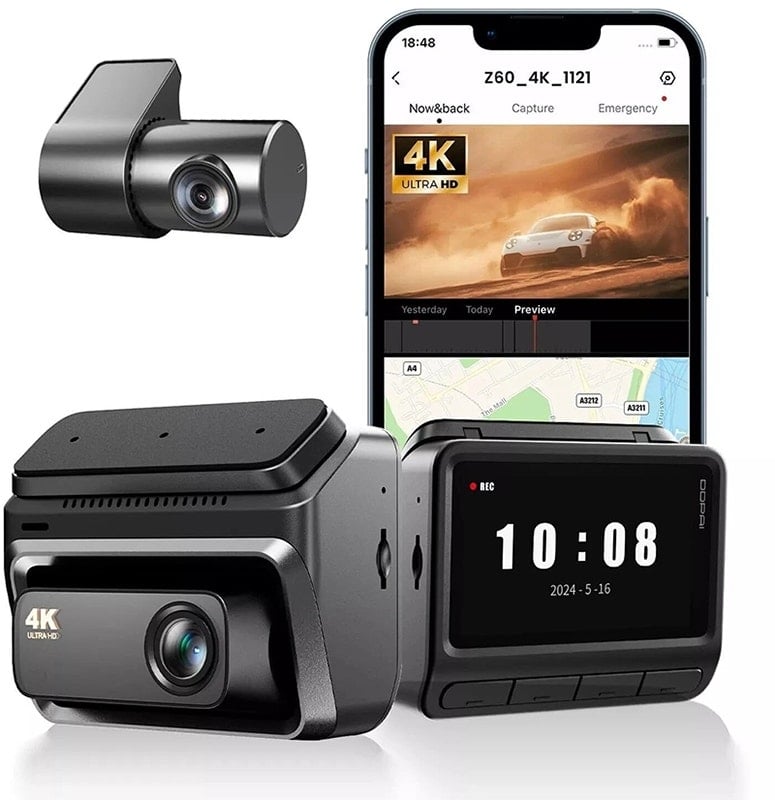 Seguridad 24/7 con la cámara DDPAI Z60: graba en 4K + 1080P, visión nocturna AI, GPS, comandos por voz y almacenamiento dual.