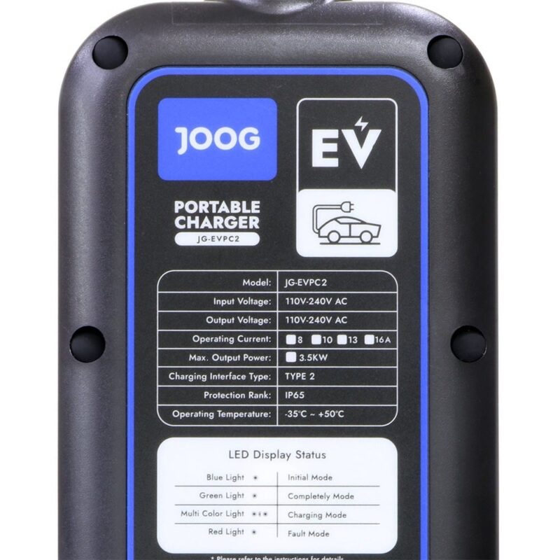 Sé el primero en valorar “Cargador portátil para carros eléctricos Tipo 2 Joog JG-EVPC2 16A”