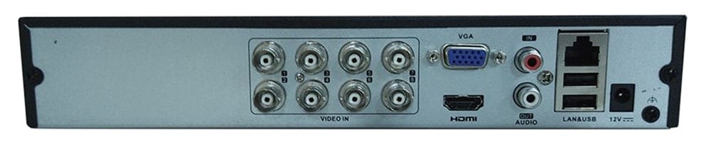 8x Video in, A-Out, VGA, HDMI, LAN RJ-45, 2x USB 2.0, RS485 – DC12V