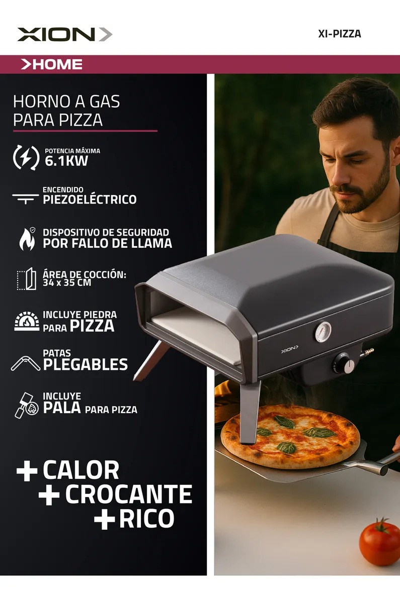 Fullbai / Electrohogar / Pequeños Cocina / Freidoras de aire y hornos eléctricos / Horno para Pizza a Gas Xion XI-Pizza con Piedra y Pala 34 x 35 cm