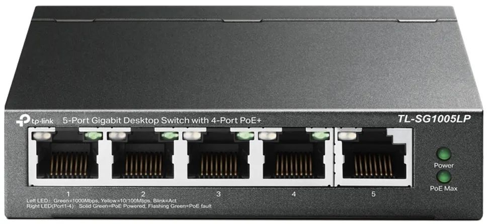 TP-Link TL-SG1005LP: el switch no administrable con 5 puertos y 4 PoE+. Conecta y alimenta dispositivos PD con un solo cable y obtén una Transmisión PoE de hasta 250m!