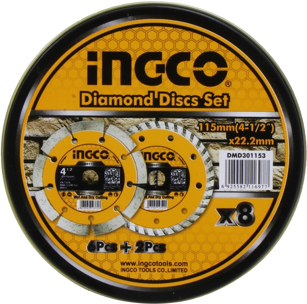 Fullbai / Ferretería y Herramientas / Herramientas eléctricas / Juego Disco Corte de Diamante Ingco DMD301153 8PCS