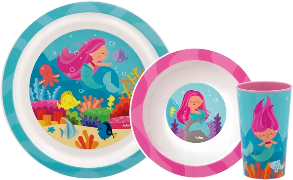 Fullbai / Bebés y Niños / Alimentación / Sillas altas y vajilla infantil / Kit para comida Aventuras Sirena Buba – 15371