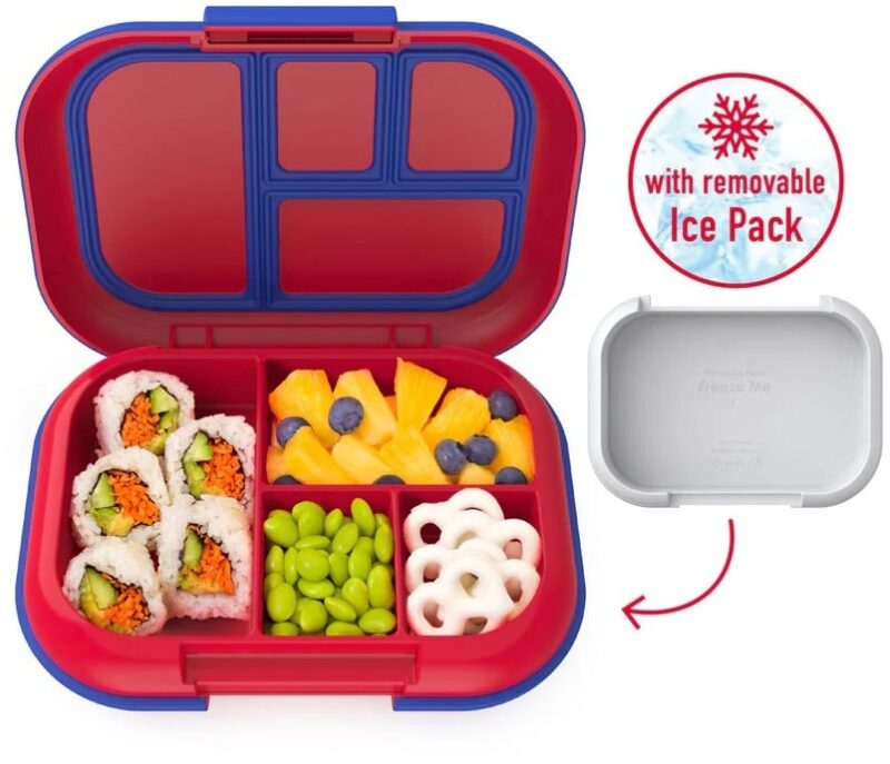 Esta fiambrera bento para niños presenta un diseño exclusivo y patentado que incluye una bolsa de hielo extraíble. Esto garantiza que los alimentos se mantengan frescos durante más tiempo, sin necesidad de bolsas de hielo adicionales.