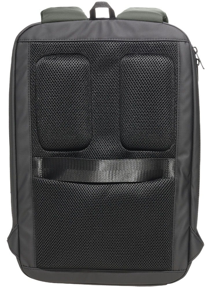 Sistema luggage pass-through una correa horizontal trasera que ayuda a estabilizar la mochila sobre la maleta durante el desplazamiento.