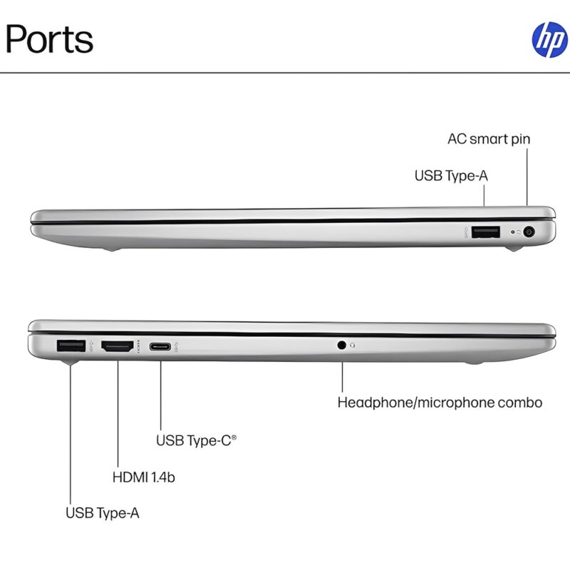 Fullbai / Tecnología / Computadoras y notebooks / Notebooks / Notebook HP 15-FC0146DX 15.6″ AMD Ryzen 5 7520U 8 GB LPDDR5 512 GB SSD Touch – Natural Silver
