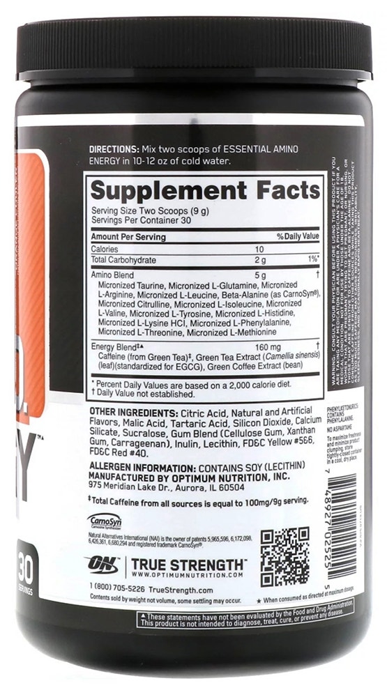 Fullbai / Belleza y Salud / Salud y Bienestar / Vitaminas y suplementos / Optimum Nutrition Essential Amino Energy Orange Cooler – 270g