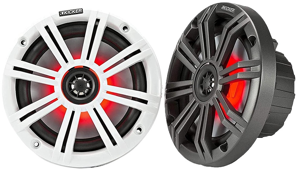 Equipe su embarcación con los resistentes parlantes marinos Kicker Marine KM65, escuchará la claridad de su audio sobre los atronadores sonidos del mar.