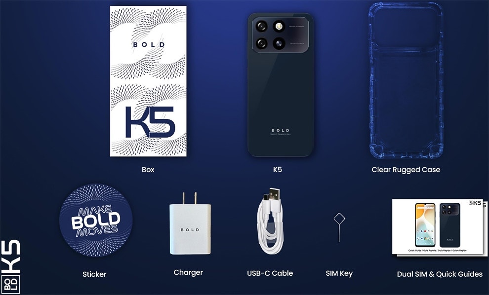 Con una batería de 5000 mAh, el Bold K5 te acompaña durante todo el día. Olvidate de cargarlo constantemente y enfocáte en lo que más te gusta.