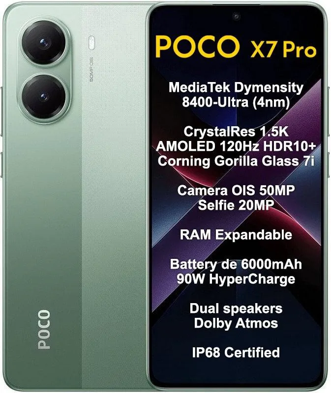 Fullbai / Tecnología / Smartphone Xiaomi Poco X7 Pro 5G Dual Sim 6.67″ 8GB/256GB Green (Global)
