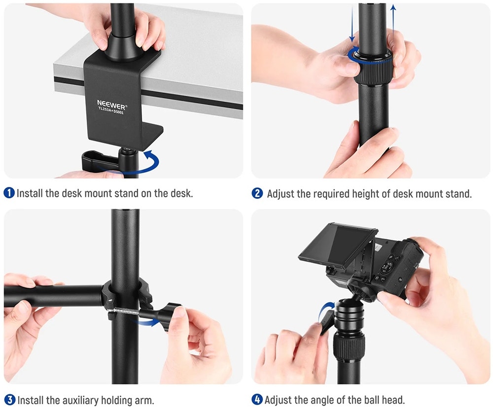 Fullbai / Tecnología / Fotografía y Filmación / Accesorios de fotografía / Trípodes y estabilizadores / Soporte Neewer Table Top Whith Auxiliary Holding ARM TL253A – Negro